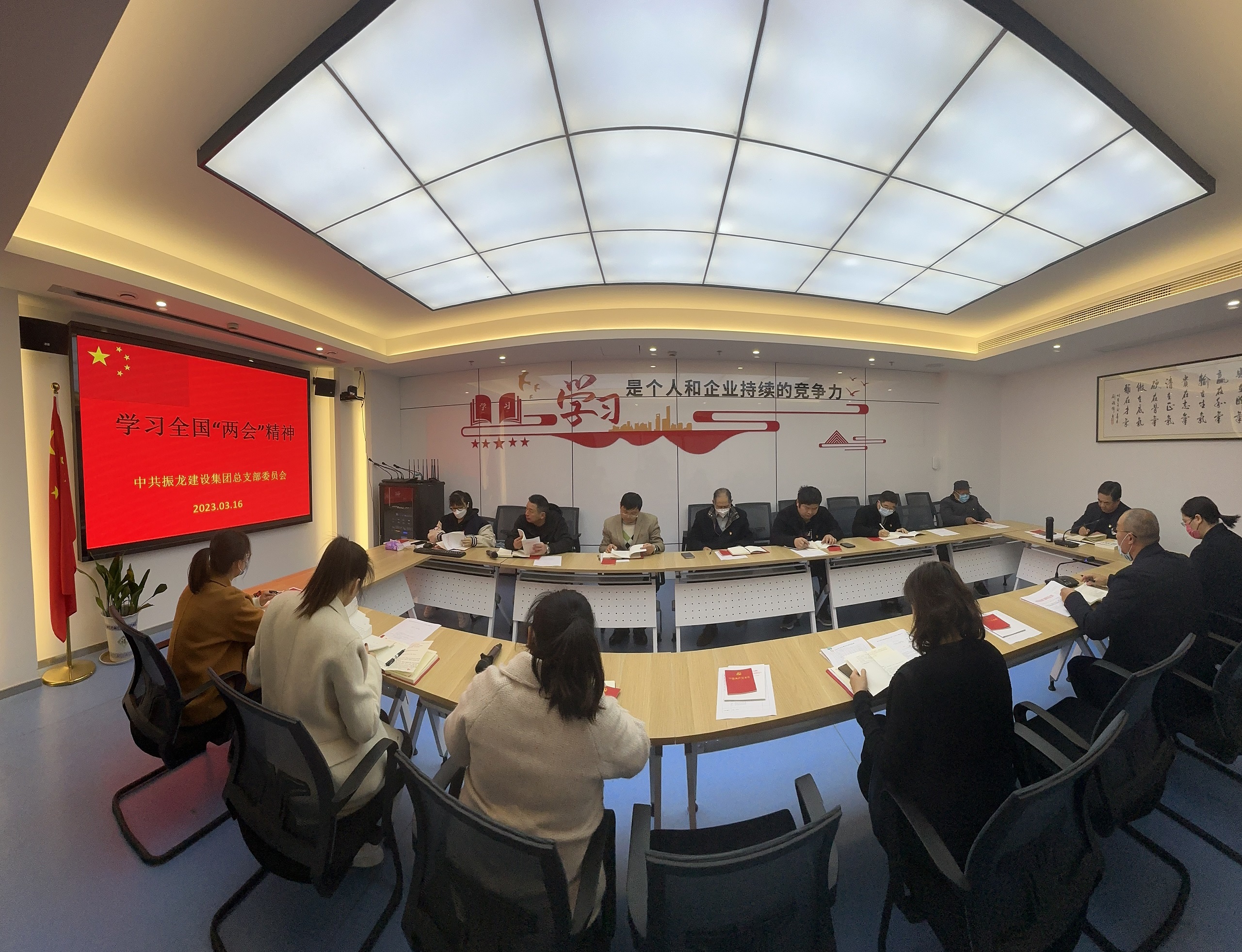 奋进新征程 建功新时 集团党总支召开学习贯彻全国两会精神会议为深人学习贯彻全国两会精神,进一步统一思想、凝聚共识 ,3月16日,中共振龙建设集团党总支召开学习全国两会精神会议。全体党员、总部机关工作人员参加会议。会上,党总支副书记朱辉带领与会人员学习了习近平总书记参加十四届全国人大一次会议江苏代表团审议时的重要讲话和在全国两会上重要讲话精神。与会人员进行了交流。